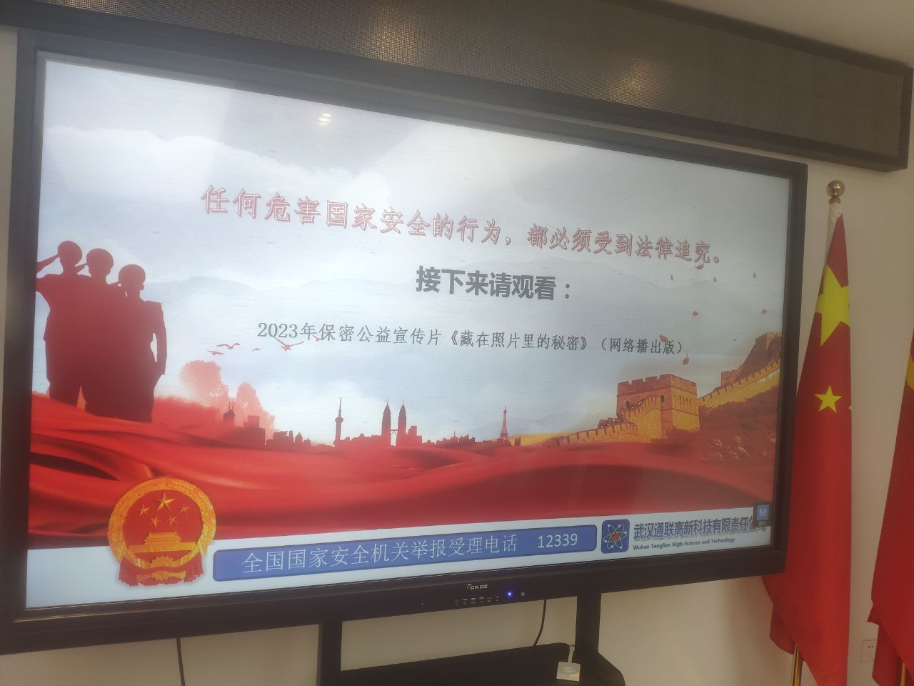 最后董事長(zhǎng)帶領(lǐng)全體同志觀看:2023年保密公益宣傳片《藏在照片里的秘密》
