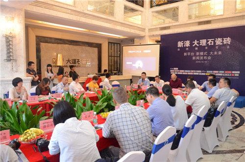 盡管沒有產(chǎn)品展示,但現(xiàn)場人氣依舊爆棚。這不經(jīng)讓人聯(lián)想到10月19日新濠大理石瓷磚營銷總經(jīng)理朱國亮在其品牌“新平臺 新模式 大未來”的新聞發(fā)布會上語出驚人:產(chǎn)品時代已過,資本時代來臨。