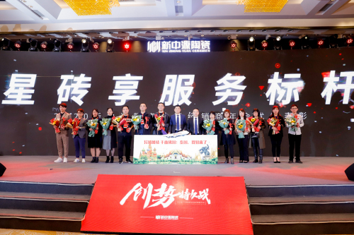新中源陶瓷企業(yè)集團(tuán)總裁霍鐮泉、新中源陶瓷企業(yè)集團(tuán)副總裁吳啟章、新中源陶瓷企業(yè)集團(tuán)副總裁黎德勇、新中源陶瓷企業(yè)集團(tuán)副總裁潘銳根、新中源陶瓷企業(yè)集團(tuán)副總裁曾彥熾、新中源陶瓷營(yíng)銷總經(jīng)理陳勤顯、新中源陶瓷品牌管理中心總經(jīng)理郭浩等領(lǐng)導(dǎo),寸design創(chuàng)始人/中國(guó)設(shè)計(jì)星D4導(dǎo)師/2015中國(guó)設(shè)計(jì)星全國(guó)冠軍崔樹,近50家行業(yè)媒體以及近千位來(lái)自全國(guó)各地的經(jīng)銷商家人勝利會(huì)師,共同破局領(lǐng)航“持久戰(zhàn)”。